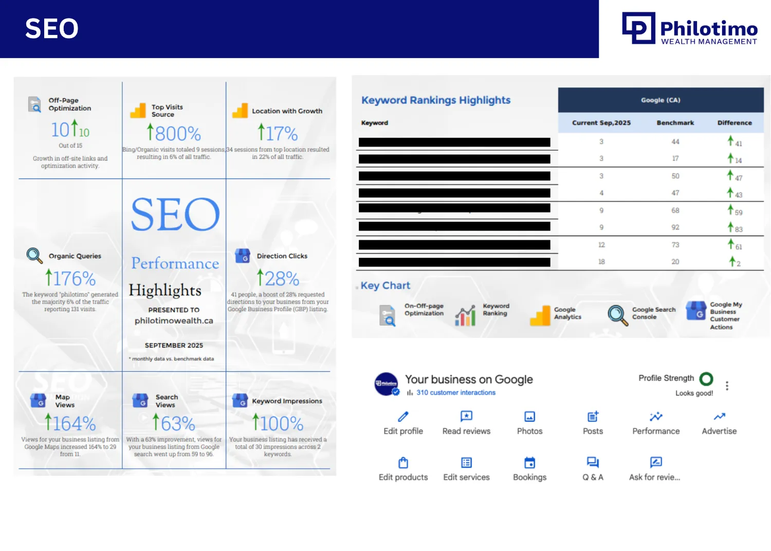 Philotimo Wealth Management sought to increase inbound inquiries and grow their client base. With limited online visibility, the firm needed a targeted strategy to attract high-quality leads and establish a stronger digital presence.